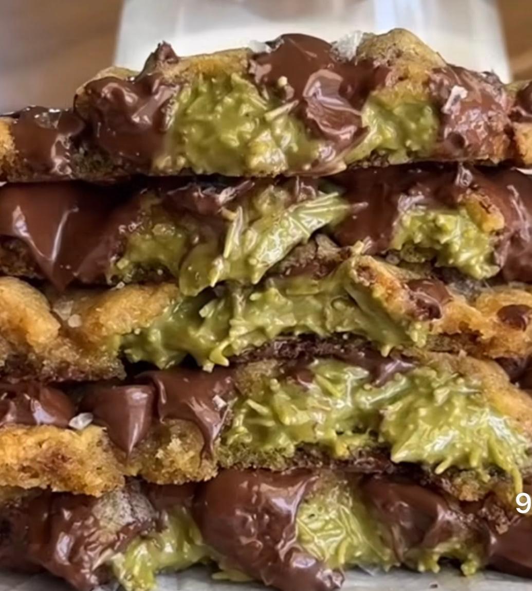 Chocolate Chip Cookies stuffed with Kunafa, Pistachio, White Chocolate and Sesame
